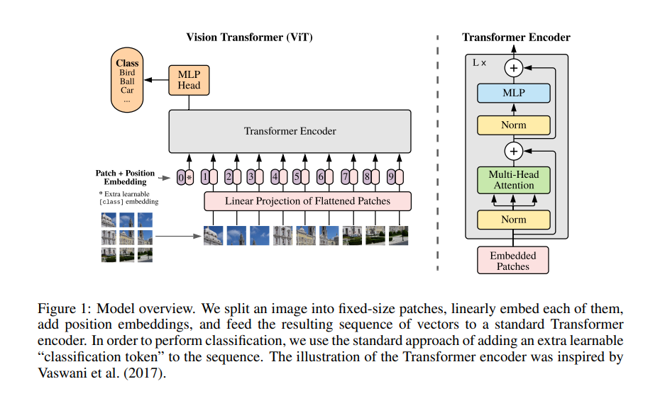 이미지를 고정된 크기의 patch로 나누어 준 뒤 각 patch를 flatten하고 linear projection하여 1D vector를 얻는다.